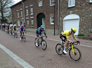 In Noorbeek/Mheer na zo’n twee uurtjes koers scheurde het peloton in twee grote stukken. In Banholt (na 106 km) zat het eerste peloton op 1:09 en de tweede groep op 1:50.